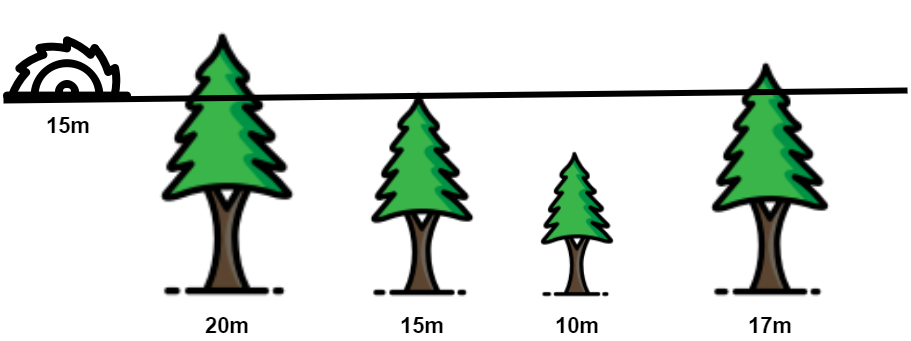 1박 2일의 상근이가 나무가 필요한데, 벌목하고 잘린 나무를 사용한다는 내용입니다. 이때 벌목할때 쓰는 목재절단기는 한번에 H만큼 높이까지 모든 나무를 한번에 자를 수 있다고 합니다. 환경을 생각하는 상근이는 나무가 최대한 잘려나가지 않고 필요한 나무를 얻어내는것이 목표입니다.