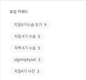 그리고 지금 이 글을 다시 쓰는 시점에는 이 글을 올린지 대략 두달이 되어가는 시점인데, 내 블로그의 키워드를 공개하겠다.
