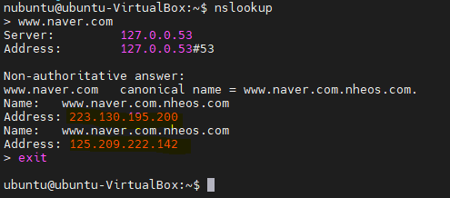 hosts파일에도 맞는 IP주소가 없으면 이제 서버에 여쭈어보게 됩니다. 이 서버 불쌍한 놈입니다.. 우리가 알려달라고 하면 여기 저기 물어보고 그제서야 알려줍니다.