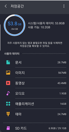 어플리케이션 말고도 문서도 있고 이미지, 동영상도 있는데, 저는 주기적으로 컴퓨터로 백업해서 핸드폰 저장공간을 확보하는 편입니다.