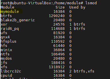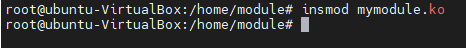 마지막으로 모듈을 제거할때는 rmmod명령을 치면 됩니다. 사용법은 rmmod [제거할 모듈명] 으로 끝 확장자 .ko는 기재하지 않아도 상관없습니다.