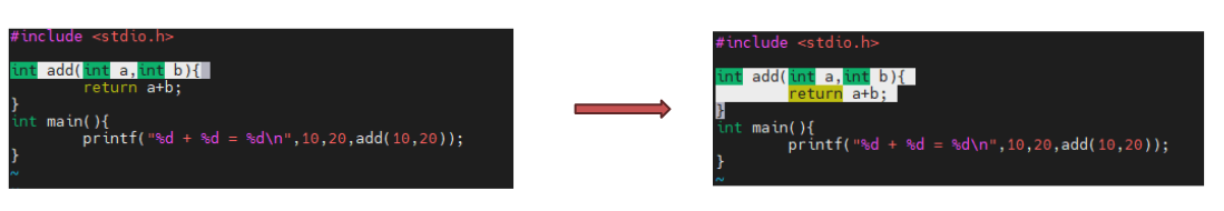우선 함수 가장 앞에 'v'를 눌러 선택 모드로 지정하시구요. '$'를 눌러 가장 맨 끝 줄로 이동합니다. 가장 맨 끝 줄에는 함수를 여는 중괄호가 있습니다. 이때 '%'를 누르면 함수 전체를 선택하게 됩니다.