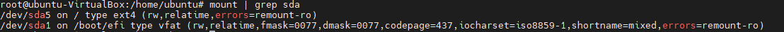 0. 먼저 mount를 그냥 치게되면 현재 마운트된 시스템의 하드웨어들이 보이게 될겁니다. 그 중 sda, sdb 등이 디스크라고 보시면 됩니다. 아래는 저의 시스템에 마운트된 sda입니다.