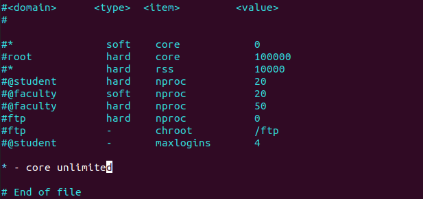 # vi /etc/security/limits.conf