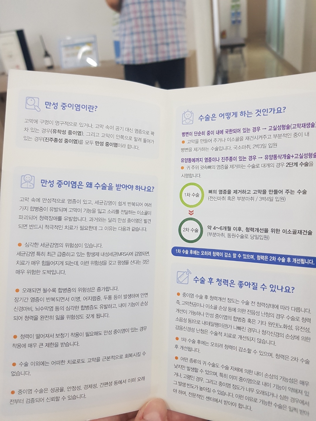 접수하고 나면 코로나 검사를 받고 여기서 대기좀 타야되는데 기다리는 시간동안 만성 중이염에 대해서 알아보자.