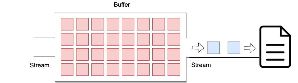 이 때 완전히 버퍼가 채워지면 그제서야 데이터를 한꺼번에 파일로 전송하게 됩니다.
