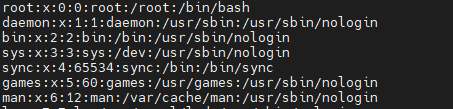 | root:x:0:0:root:/root:/bin/bashroot:x:0:0:root:/root:/bin/bash |
