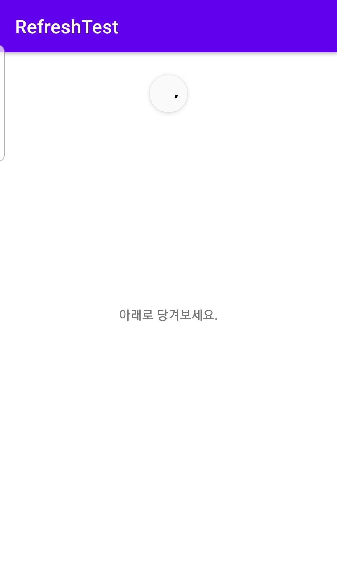 android:text="아래로 당겨보세요."/>