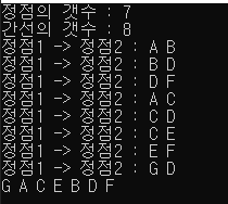 그리고 제가 제시했던 바로 위의 그래프의 위상정렬 결과는 아래와 같습니다.