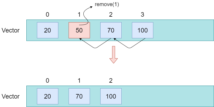 push_back()을 사용하면 아래와 같이 vector 뒤에 차곡차곡 데이터를 추가합니다. 반대로 삭제하려면 pop_back()을 사용하시면 됩니다. pop_back()은 데이터를 return하지는 않고, 단지 꺼내주기만 합니다. 가장 마지막 원소를 가져오려면 back()을 이용하세요.
